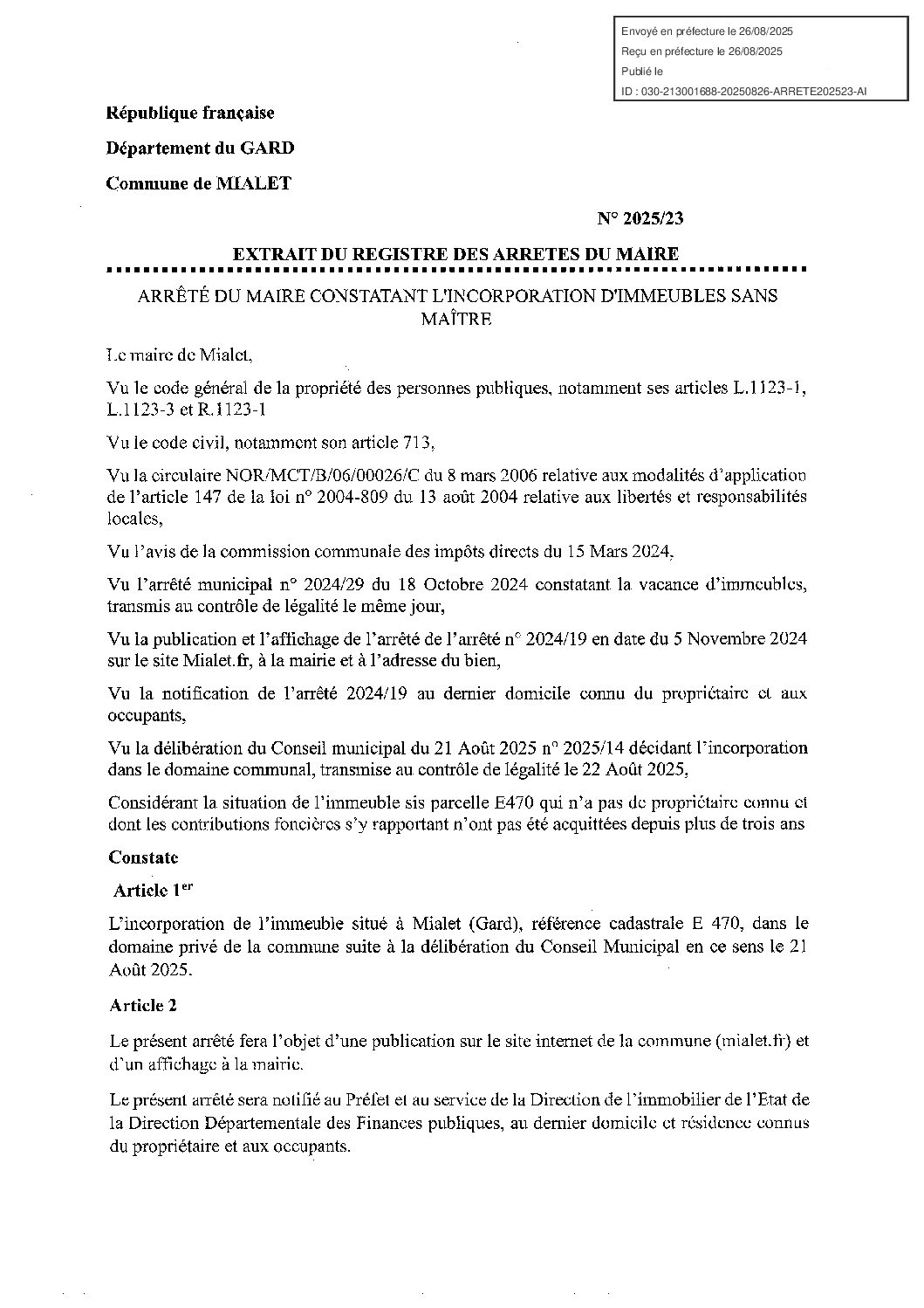 En région OCCITANIE, Mialet se situe au Nord Ouest du département du Gard dans le triangle Alès, Saint Jean du Gard, Anduze, distantes respectivement de 21, 8 et 10 Km. Haut lieu de la révolte camisarde et des guerres de religions, Mialet compte 618 habitants résidant dans huit gros hameaux répartis sur une superficie de 3076 ha. Du nord au sud : Brugairolles, les Aigladines, Aubignac, les Puechs, Mialet village, Paussan, le Pradinas, Luziers.