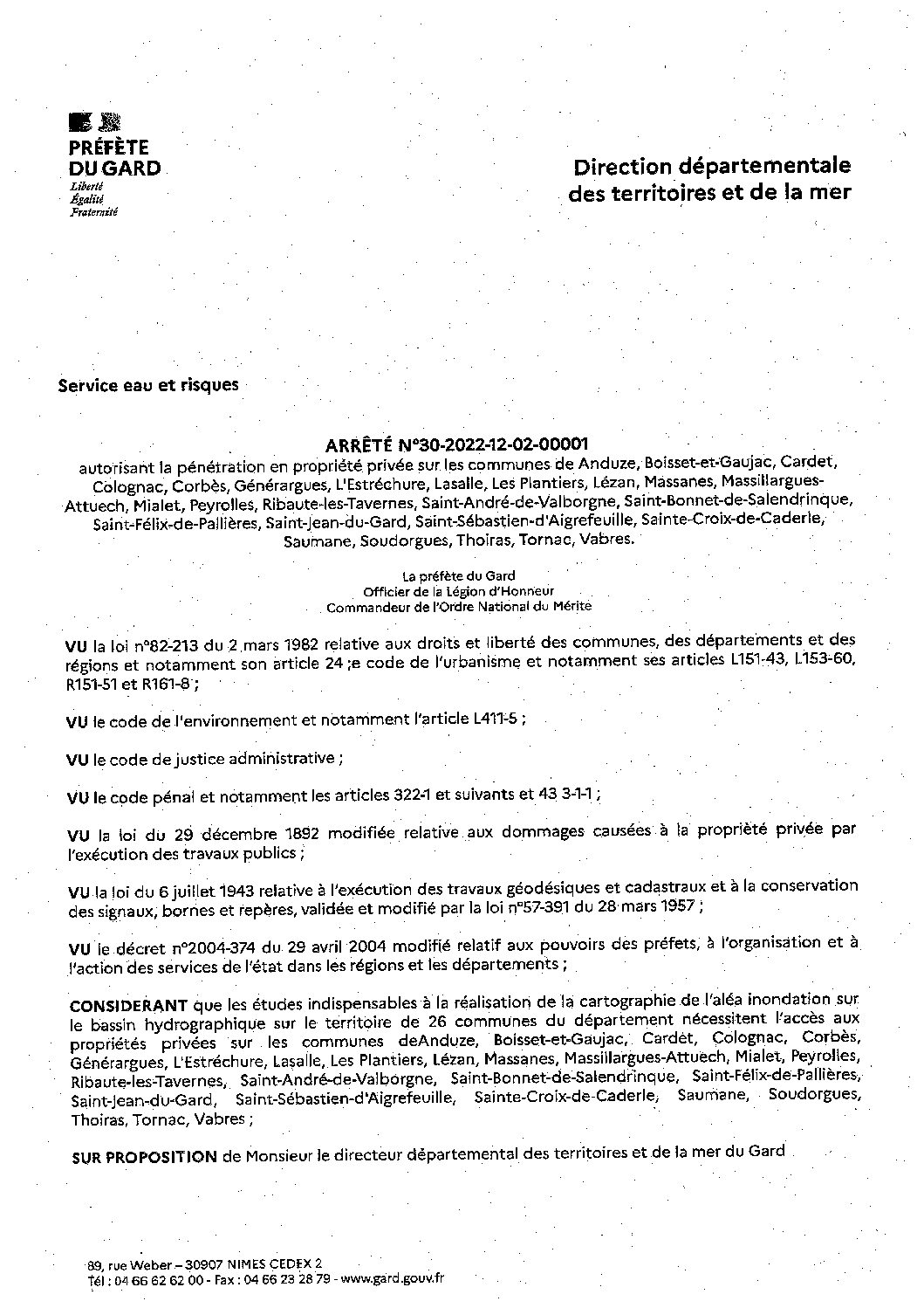 Bonjour Vous trouverez en pièce jointe l’arrêté portant autorisation de destruction d’animaux d’espèces de faune sauvage occasionnant un risque urgent ...