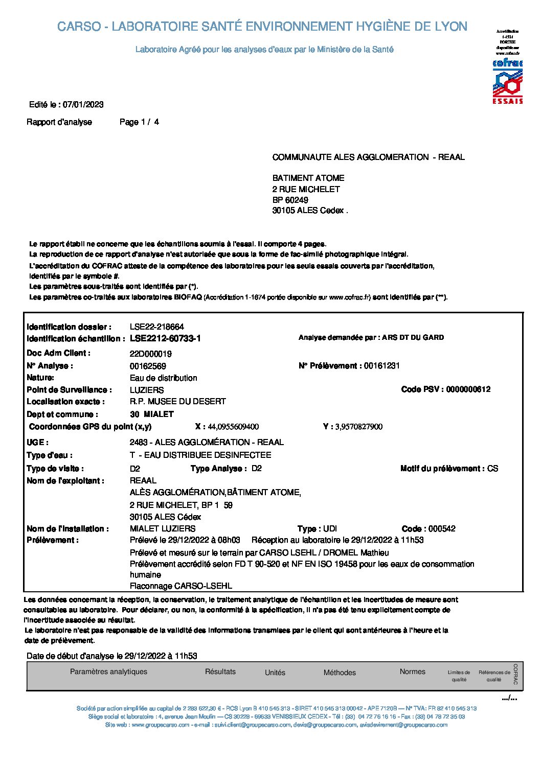 D1 – ANALYSE MIALET DU 05 MAI 2023 – CARSO N°00168055 D1 – ANALYSE MIALET DU 05 MAI 2023 ...