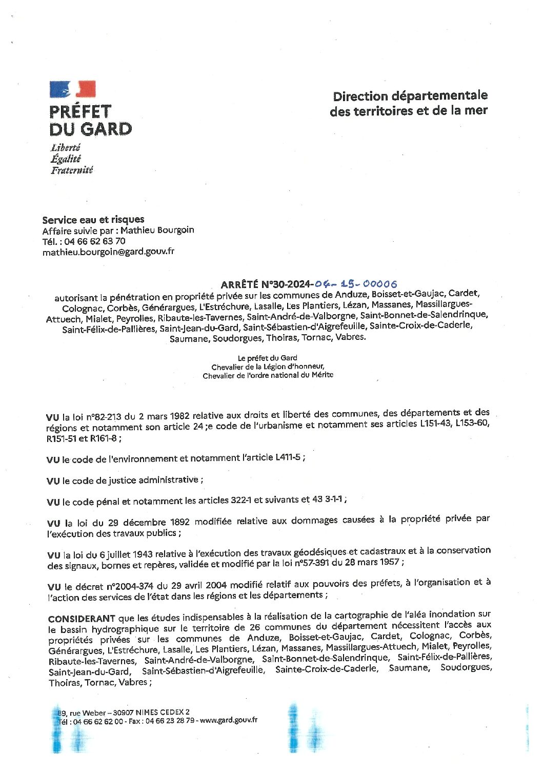 Pour information à la population, des agents de l’Etat ont l’autorisation de rentrer dans les propriétés privées non closes dans le cadre du PPRI.