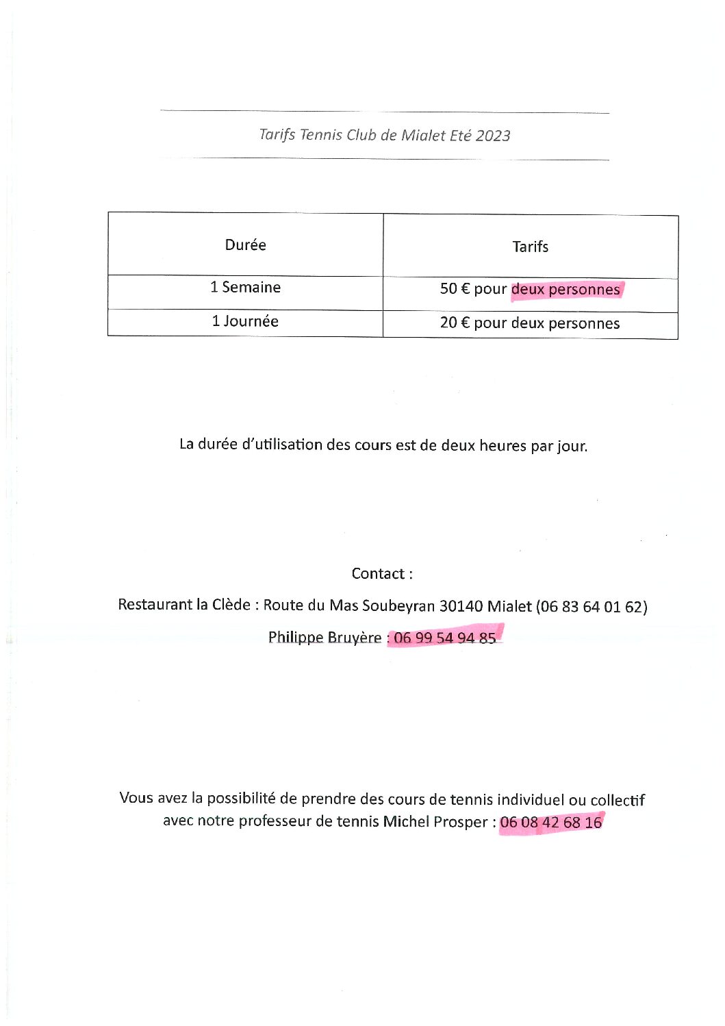infos des asso